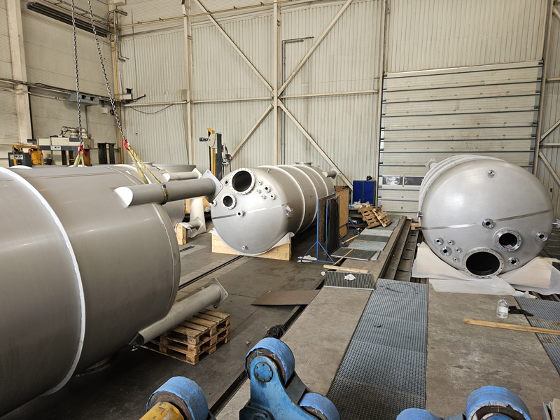 In 2020, based on the data provided by the Customer, we designed and constructed a total of 26 tanks in our workshop in the area of a plant producing electrolytes in Tatabánya – required for lithium batteries.