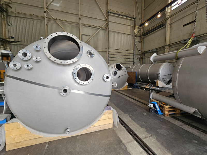 Custom made storing and process vessels with different volumes, if needed (in case of bigger volumes) with site erecting and assembly.